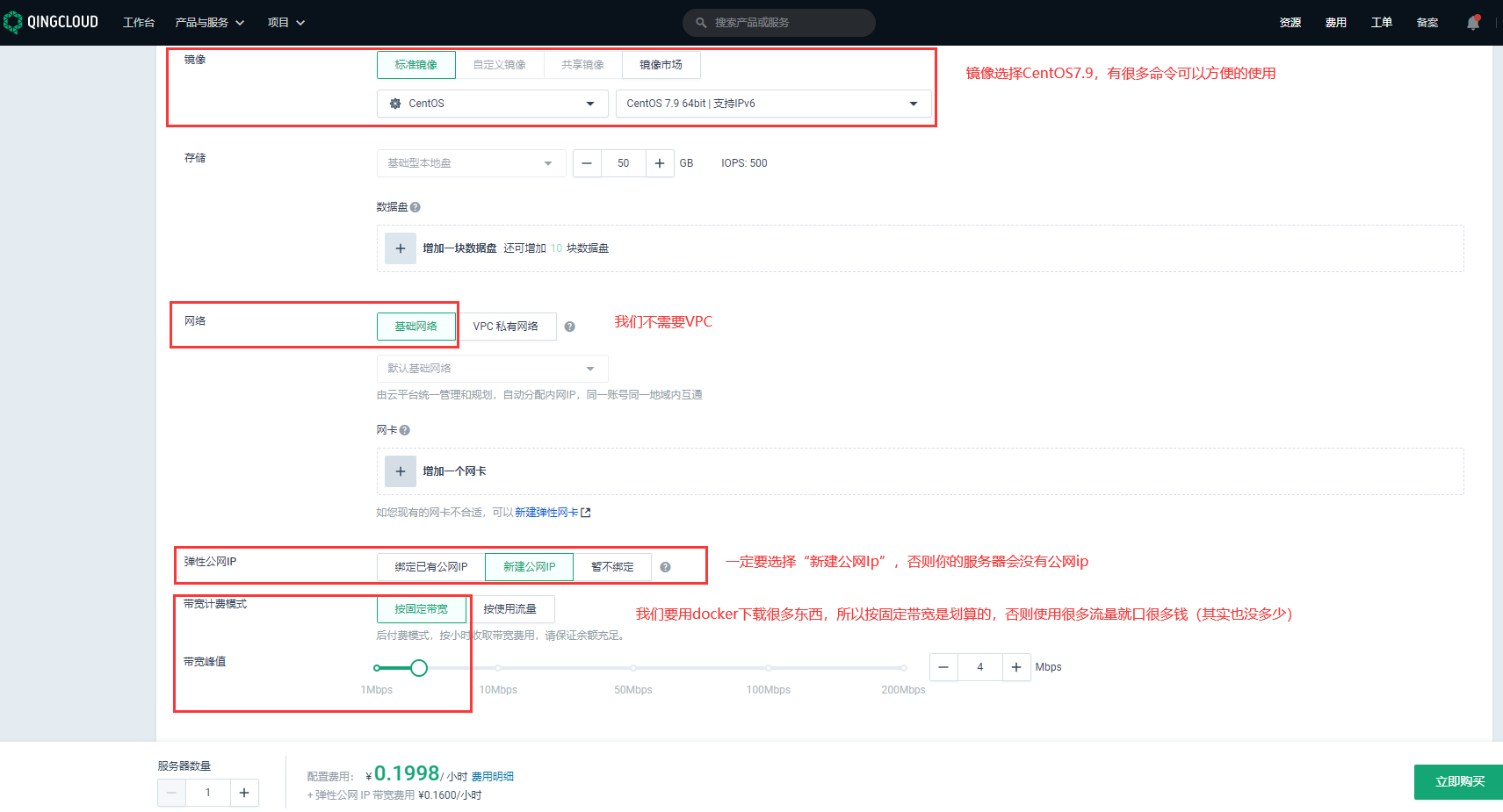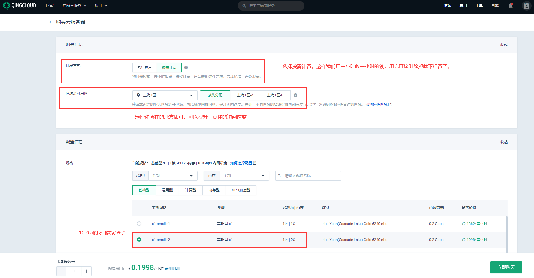青云服务器及docker体验 2022-04-10 15:54 > 购买青云服务器及docker命令、制作java应用镜像初体验。 > > docker学了很多时间了,但是业务中使用的时候一直很少,很多都快忘了,所以这里自己搞一个服务器装个docker玩玩。 # 购买青云服务器 青云新用户注册后会送你五百多的费用,我们可以使用按需付费的方式购买云服务器做实验(相当于免费)。 产品与服务->云服务器->创建:    最后,点击立即购买就行,由于我们是新用户,有五百多的赠送费用,所以这里就不用花钱了。 购买之后在工作台云服务器那可以看到我们的机器:  直接使用xshell,或securtCRT等远程连接工具,使用这个公网Ip和我们root,及我们设置的密码连接就行。 如果你临时有事出去了,想知道如果关闭或减少计费,可以先看最后一小节。 # 安装docker ```shell #删除所有docker相关的东西 yum remove docker* #安装docker所需的东西 yum install -y yum-utils #配置docker的yum源 yum-config-manager \ --add-repo \ http://mirrors.aliyun.com/docker-ce/linux/centos/docker-ce.repo #安装docker及相关(大概耗时几分钟) yum install -y docker-ce docker-ce-cli containerd.io #设置docker开机启动,并立即启动docker systemctl enable docker --now #看docker命令是否正常输出docker信息 docker info #配置docker下载镜像加速地址,下面这些直接全部赋值粘贴执行即可 sudo mkdir -p /etc/docker sudo tee /etc/docker/daemon.json <<-'EOF' { "registry-mirrors": ["https://d7f29occ.mirror.aliyuncs.com"], "exec-opts": ["native.cgroupdriver=systemd"], "log-driver": "json-file", "log-opts": { "max-size": "100m" }, "storage-driver": "overlay2" } EOF sudo systemctl daemon-reload sudo systemctl restart docker ``` # 安装nginx实验 ```shell #拉取nginx镜像 docker pull nginx #查看本地镜像,会看到nginx以及下载下来了 docker images #运行nginx容器 #-d后台运行 #-p端口映射(主机端口:docker容器端口) #--name容器名字 #--restart主机重启时容器执行策略 docker run -d -p 80:80 --name mynginx --restart=always nginx #查看正在运行的容器,可以看到nginx正在运行 docker ps ``` 在青云后台中,添加80端口的安全组策略(别忘了点击“应用修改”按钮),然后就能在浏览器通过服务器的公网ip访问,可以看到nginx的首页。 # 部署Java应用 我们可以通过docker部署Java应用 写一个最简单的SpringBoot应用,连接redis。 ## 安装redis ```shell #拉取redis镜像 docker pull redis ``` 在[docker hub](https://hub.docker.com/)中查找redis,可以看到docker容器里的redis数据是存放在/data目录的,所以我们需要将其挂载出来。  另外,也可以看到docker容器里的redis配置文件是在这个位置,所以我们也要把他挂载出来。  在宿主机创建对应的数据目录和配置文件: ```shell mkdir -p /data/redis/data echo "appendonly yes" > /data/redis/redis.conf ``` 启动redis容器 ```shell #docker run [OPTIONS] IMAGE [COMMAND] [ARG...] #最后的redis-server /etc/redis/redis.conf是[COMMAND]部分,让redis启动时去加载配置文件。在上图中也能够看到官方也有说明 docker run -d -p 6379:6379 --name myredis --restart=always \ -v /data/redis/redis.conf:/usr/local/etc/redis/redis.conf \ -v /data/redis/data:/data \ redis \ redis-server /usr/local/etc/redis/redis.conf #查看容器是否正常启动,最后多看几次,有时候刚开始是正常,过了两三秒就不正常了 docker ps ``` 刚刚忘记给redis设置密码了,修改下配置文件: ```shell vi /data/redis/redis.conf #添加内容:requirepass abc123456 #重启redis docker restart myredis ``` 在青云页面安全组中开放端口6379(别忘了点击“应用修改”按钮),然后就可以使用客户端工具连接一下看能否正常连接使用redis。 ## Java应用 使用SpringBoot快速初始化一个最简单的项目: pom: ```xml <?xml version="1.0" encoding="UTF-8"?> <project xmlns="http://maven.apache.org/POM/4.0.0" xmlns:xsi="http://www.w3.org/2001/XMLSchema-instance" xsi:schemaLocation="http://maven.apache.org/POM/4.0.0 https://maven.apache.org/xsd/maven-4.0.0.xsd"> <modelVersion>4.0.0</modelVersion> <parent> <groupId>org.springframework.boot</groupId> <artifactId>spring-boot-starter-parent</artifactId> <version>2.6.6</version> <relativePath/> <!-- lookup parent from repository --> </parent> <groupId>com.example</groupId> <artifactId>demo</artifactId> <version>0.0.1-SNAPSHOT</version> <name>demo</name> <description>Demo project for Spring Boot</description> <properties> <java.version>1.8</java.version> </properties> <dependencies> <dependency> <groupId>org.springframework.boot</groupId> <artifactId>spring-boot-starter-data-redis</artifactId> </dependency> <dependency> <groupId>org.springframework.boot</groupId> <artifactId>spring-boot-starter-web</artifactId> </dependency> <dependency> <groupId>org.springframework.boot</groupId> <artifactId>spring-boot-starter-test</artifactId> <scope>test</scope> </dependency> </dependencies> <build> <plugins> <plugin> <groupId>org.springframework.boot</groupId> <artifactId>spring-boot-maven-plugin</artifactId> </plugin> </plugins> </build> </project> ``` TestController: ```java package com.example.demo.controller; import org.springframework.beans.factory.annotation.Autowired; import org.springframework.data.redis.core.StringRedisTemplate; import org.springframework.web.bind.annotation.GetMapping; import org.springframework.web.bind.annotation.RestController; /** * @author: HanXu * on 2022/4/10 * Class description: */ @RestController public class TestController { @Autowired private StringRedisTemplate redisTemplate; @GetMapping("/hello") public String hello() { Long count = redisTemplate.opsForValue().increment("count"); return "第【" + count + "】人访问"; } } ``` application.properties: ```properties spring.redis.host=139.198.169.10 spring.redis.password=abc123456 