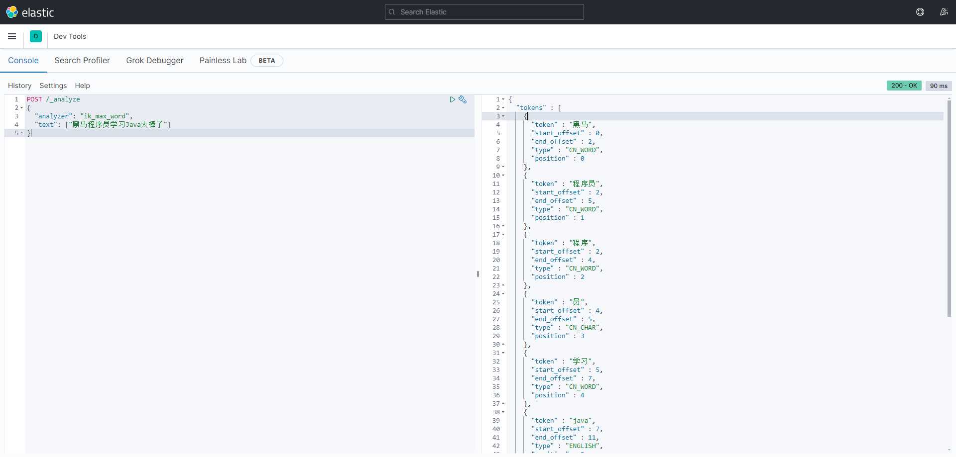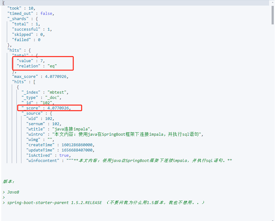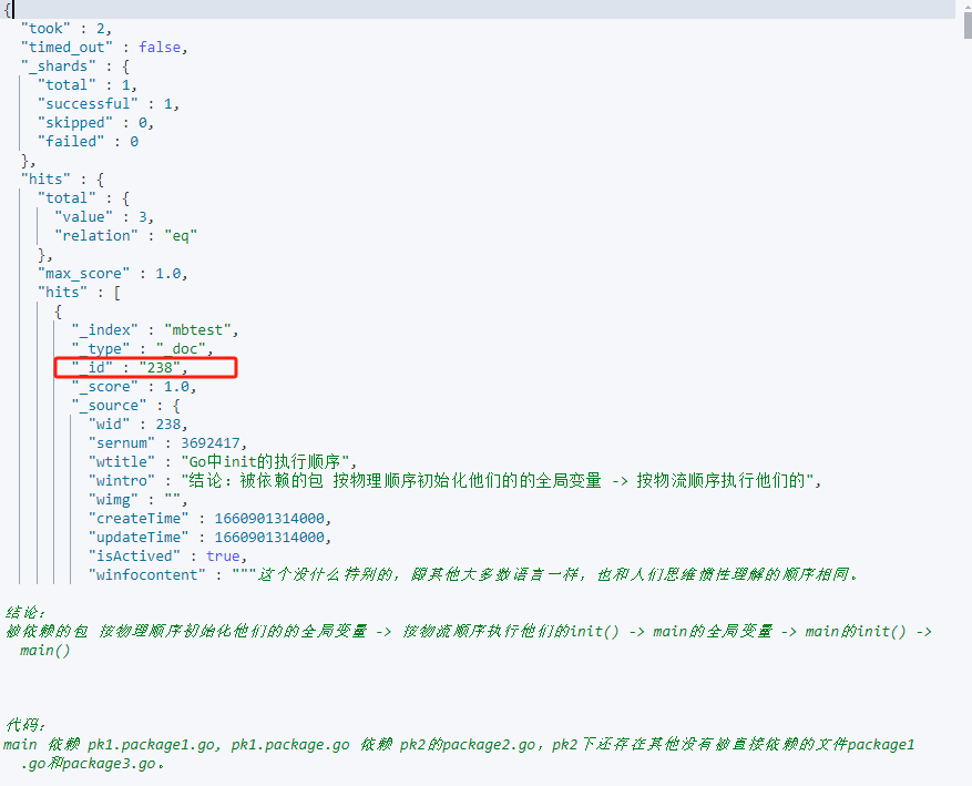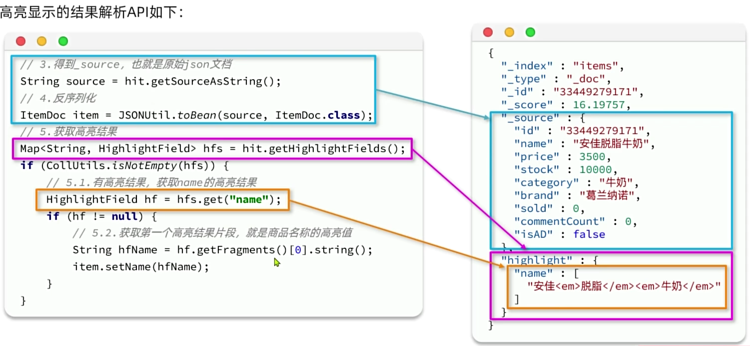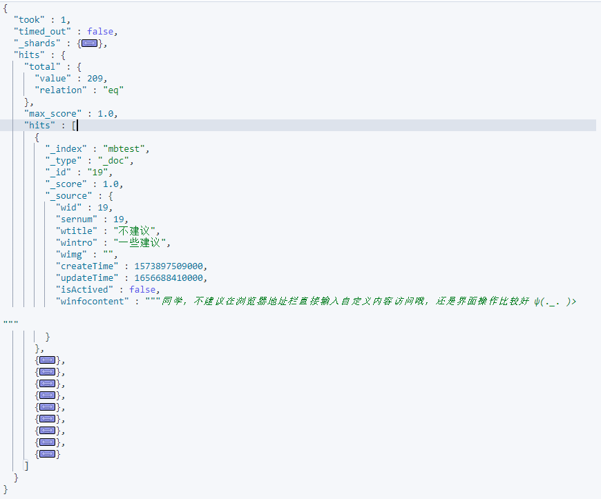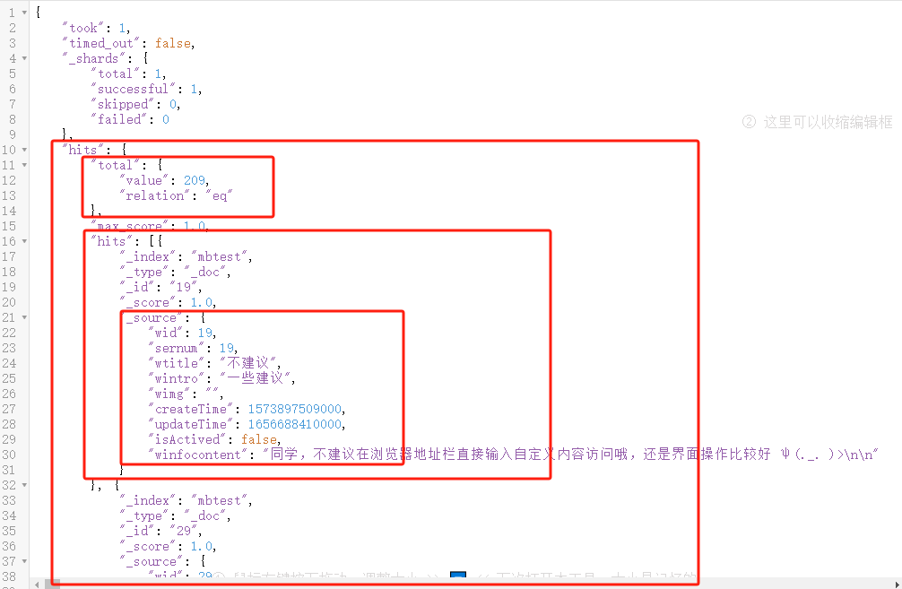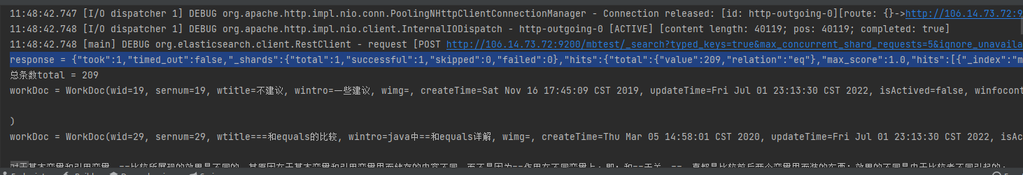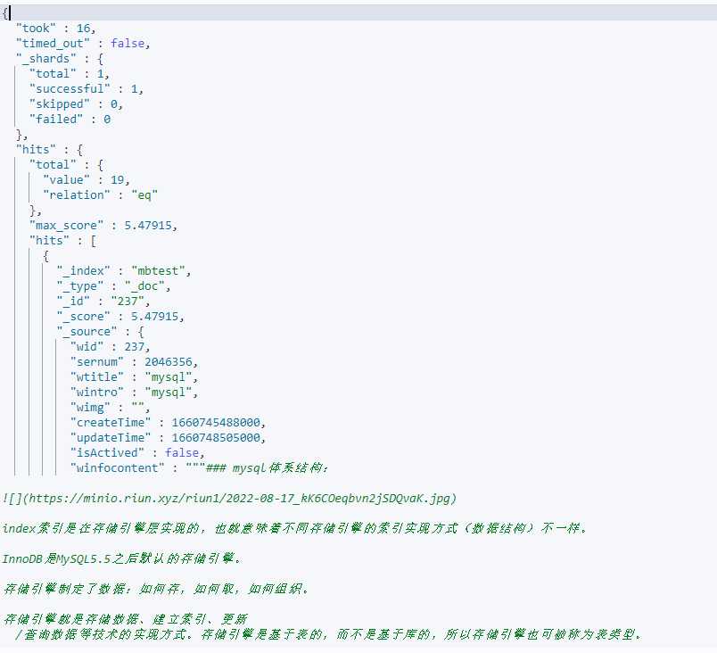 一文入门elasticsearch 2024-07-10 15:23 ## 简介 ES是基于Lucene开发的搜索引擎,Lucene是一套Java api,由某个哥们在1999年开发的。这套api的好处是扩展性搞;使用倒排索引做查询性能非常高。所以后面有很多搜索服务都是基于它做的。ES和solr都是。 ES是某个哥们在2004年开发的,最开始叫Compress,后来又重写了一版支持分布式,支持resuful调用(支持多语言使用),改名es,后来才超过了solr。 Kibana是es官方提供的图形化看板。 ## 一、安装 ### es安装 8以上版本api变化很大,所以企业中较多还是使用8以下版本。 ```sh docker pull elasticsearch:7.12.1 # single-node 单点运行,挂载数据存储目录和插件目录,--privileged 容器获得对主机的所有访问权限,9200 http访问端口,9300 集群间通信端口 # es-data 和 es-plugins是命名卷,在/var/lib/docker/volumes/ # es默认安装时使用内存大小是1G,我们机器内存有限,所以调低到了512m,但是不能再低了,再低使用es可能会出问题。 # ELASTIC_PASSWORD指定密码,内置超级用户名elastic docker run -d \ --name es \ -e "ES_JAVA_OPTS=-Xms512m -Xmx512m" \ -e "discovery.type=single-node" \ -e "ELASTIC_PASSWORD=xxx" \ -v es-data:/usr/share/elasticsearch/data \ -v es-plugins:/usr/share/elasticsearch/plugins \ --privileged \ -p 9200:9200 \ -p 9300:9300 \ elasticsearch:7.12.1 ``` 访问:http://ip:9200/ (本机访问:curl -X GET "http://localhost:9200/")  ### Kibana安装 Kibana就是为了图形化es的,所有安装时要指定es的地址,这样在Kibana中就能随意操作es了。 ```sh docker pull kibana:7.12.1 docker run -d \ --name kibana \ -e ELASTICSEARCH_HOSTS=http://ip:9200 \ -p 5601:5601 \ kibana:7.12.1 ``` 访问:http://ip:5601 Kibana有很多功能,不过我们现在主要是用它操作es执行http请求。所以我们先点击Explore on my own:  再点击Dev tools:  在这里我们就可以输入各种请求去执行,然后点击右边的运行按钮: > 输入内容后,ctrl + enter 快捷键执行  由于我们启动kibana时已经指定了es的地址,所以请求时不再需要输入ip什么的,直接Get / 就是访问:http://ip:9200/ ## 二、基础 ### 倒排索引 ES在做搜索的时候使用的是倒排索引,倒排索引包含两个重要概念: - 文档(Document):每条数据就是一个文档(mysql的一行数据就是一个文档)。 - 词条(term):文档按照**语义**分成的词语(英文语句按照空格分,中文语句按照语言意思分成多个词语)。 ES也会先按照数据的id建立正向索引,然后再将文档分词,根据词条建立词条到id集合的倒排索引:  倒排索引中,词条是唯一的,所以可以将词条建立唯一索引。做倒排索引时,同时也会记录词条在文档数据中的位置,方便后面的高亮显示功能。 然后在查询时,先将输入的语句分词,然后通过每个词条查询文档id集合,最终得到多个结果,根据业务做排序展示。比如搜索“华为手机”,分词为“华为”,“手机”;查询文档id是[2, 3]和[1, 2],然后就可以取出文档id为2、1、3的数据进行展示。 这样虽然进行了两次查询,但是每次查询都是有索引的。 MySQL这种传统数据库和ES对比,优点在于支持事务,比较安全。而ES优点在于查询效率巨快。所以两者各有其应用场景。 ### 分词器 在倒排索引中,存储时需要对文档分词,查询时需要对查询语句分词,所以分词器是很关键的。 最好的中文分词器是IK分词器,是国人林良益在2006年开源的,采用了**正向迭代最细粒度切分算法**一直沿用至今。2012年他不再维护后,就有很多社区、公司去维护这个分词器。现在最常用的是这个:https://github.com/infinilabs/analysis-ik 它的版本号刚好也是和ES一一对应的。 > **正向迭代最细粒度切分算法**的大概思路:内部维护一个常见中文词典;对于一句要被分词的语句,从每2个字开始逐个检查是否在词典中:是,则分出来;不是则继续;然后再三个字检查,四个字检查......,直到最后,如果某个字没有被分词,则单独把他作为一个词出来。 > > 当然它内部肯定不是这么粗暴,会有各种优化。 #### analysis-ik分词器安装 去github下载zip:https://github.com/infinilabs/analysis-ik/releases/tag/v7.12.1 然后解压成一个文件夹,把这个文件夹上传到我们es挂载的plugins目录下即可: ```sh # 查看插件目录挂载到哪里了 docker volume inspect es-plugins # /var/lib/docker/volumes/es-plugins/_data,将文件夹上传到这个目录下 # 重启容器 docker restart es ``` #### 测试ik分词器 在Kibana的dev_tool里测试分词 ``` POST /_analyze { "analyzer": "standard", "text": ["黑马程序员学习Java太棒了"] } POST /_analyze { "analyzer": "ik_smart", "text": ["黑马程序员学习Java太棒了"] } POST /_analyze { "analyzer": "ik_max_word", "text": ["黑马程序员学习Java太棒了"] } ``` /_analyze就是分词功能的路径,analyzer是分词器模式,相当于用哪个分词器:  standard是Es默认的分词器,ik_smart和ik_max_word是ik分词器的两种模式。 #### 补充词典和违禁词典 如果有需要分词的词语,而没有被ik分出来,则可以人工添加到补充词典ext.dic;也可以添加一些不想要被分出的词语,如违禁词,语气助词等,添加到stopword.dic中,这样这些词语就不会出现在结果集中。这个配置在elasticsearch-analysis-ik-7.12.1\config\IKAnalyzer.cfg.xml中: > ext.dic、stopword.dic是文件名,可以随便取。key="ext_dict"和key="ext_stopwords"是固定的,不能变。 ```xml <?xml version="1.0" encoding="UTF-8"?> <!DOCTYPE properties SYSTEM "http://java.sun.com/dtd/properties.dtd"> <properties> <comment>IK Analyzer 扩展配置</comment> <!--用户可以在这里配置自己的扩展字典 --> <entry key="ext_dict">ext.dic</entry> <!--用户可以在这里配置自己